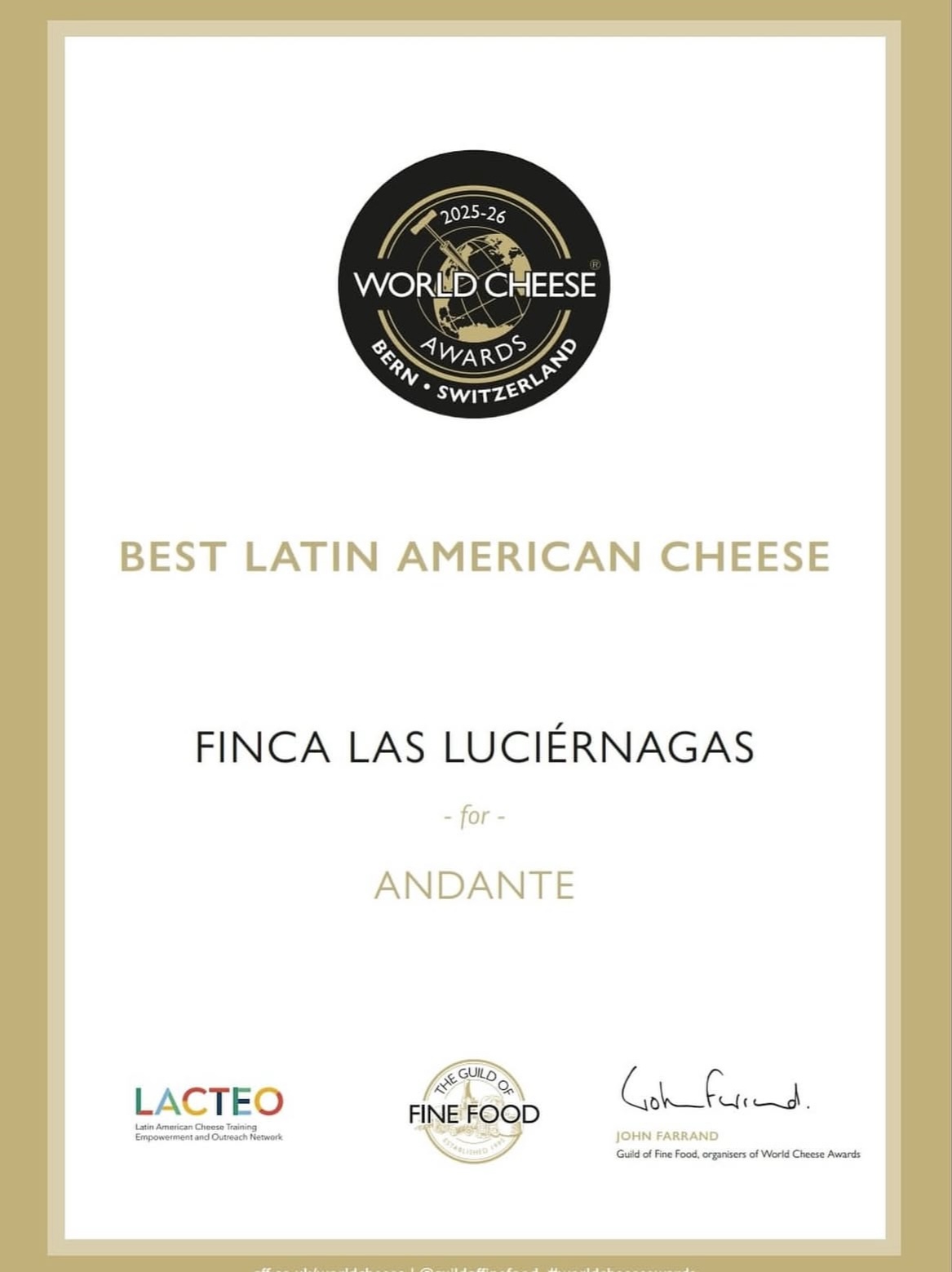 México celebró un triunfo en la escena del queso a nivel internacional. Andante, elaborado por Teresa Aguilar en Finca Las Luciérnagas, ubicada en Querétaro, obtuvo el premio al Mejor Queso Latinoamericano en los World Cheese Awards 2025. Es la segunda ocasión que México obtiene este prestigioso trofeo, instaurado en 2019 y patrocinado por LACTEO Network.