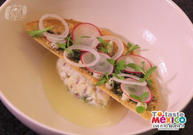 Clean the crab well and mix it with the red onion, the chile habanero, the cilantro, and the salt. Add the mixture of citrus with the juice from the fish and crab. Mix well.